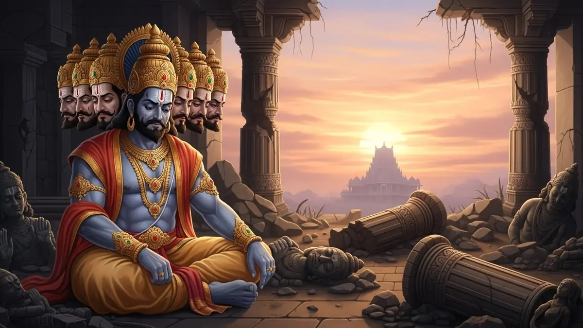Ego e Orgulho: O orgulho por seu conhecimento e força foi o início da sua queda. Ravana acreditava que, por ser tão poderoso, estava acima das leis do carma, como se pudesse agir impunemente.